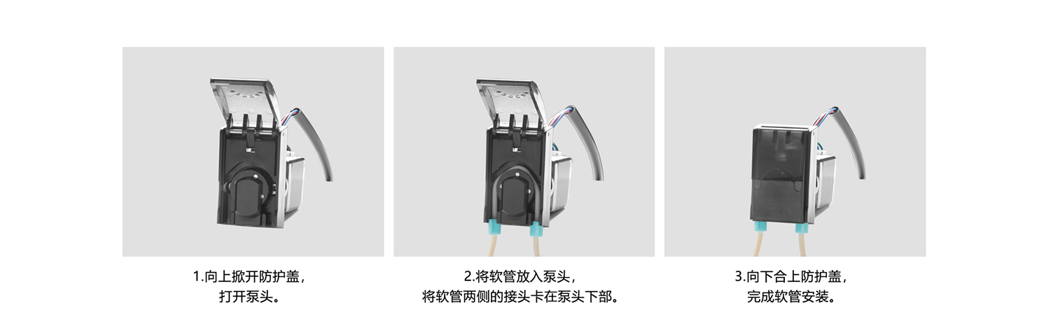 - 半透明防护盖可随时观察泵头及软管运行情况。